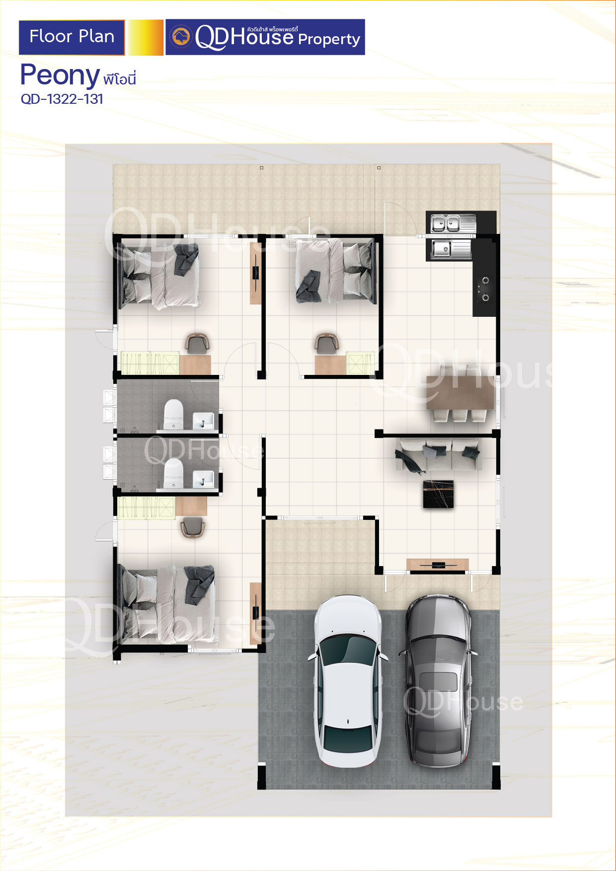QDHouse Review เเบบบ้าน PEONY เเบบบ้านลงตัว ห้องครัวขนาดใหญ่ ห้องรับเเขกเเยกส่วน | QDHouse